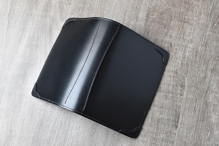 内装の左右にはポケットを配置しており、カードなどの収納に適しています。またリフィルが直接干渉する部分には型押し牛革を使用することで、リフィルの出し入れによるキズが付きにくい仕様となっています。なお、上の画像ではA6サイズのほぼ日手帳を収納しています。