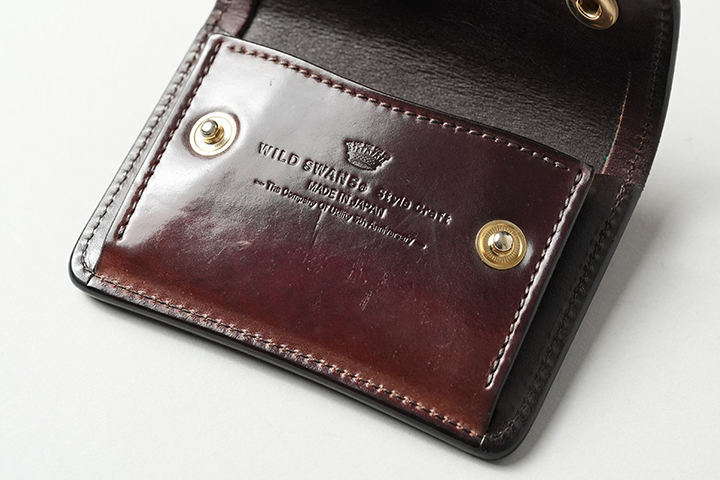 WILDSWANSでも人気皮革のシェルコードバン。当シリーズでは#8(「ナンバーエイト」:ダークバーガンディ)を用いています。歴史的にホーウィン社と繋がりが深いシューメーカーのオールデンでも、ポピュラーなカラーとして広く知られています。