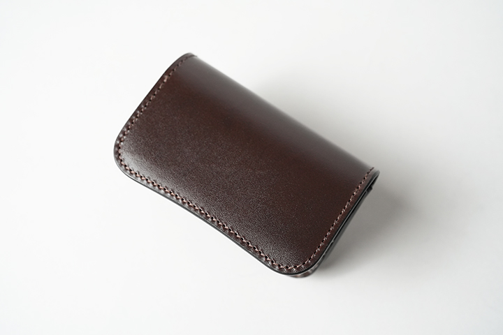 定番の名刺入れGENERAL。外装は一面サドルプルアップのチョコとなりますが、内装は3つの皮革が相まみえる特別な仕様です。とても小さなボディですが、両サイドの伸縮するマチ構造によって、メイン収納部への名刺収納枚数は最大60枚となります。