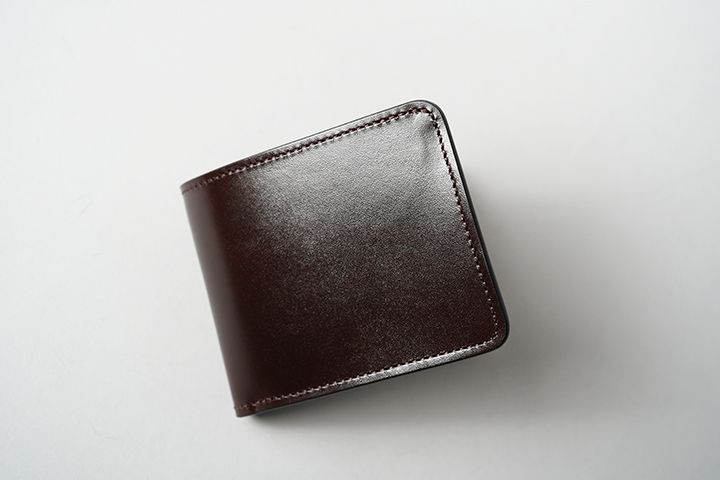 オーソドックスな二つ折り財布のGROUNDER。ご使用始めからどなたにも直感的な操作を可能にする定番アイテムです。サドルプルアップのみで仕上げた外装に対し、内装はコインケースの前身にシェルコードバン、カード段の一部にクロコダイルをあしらいました。