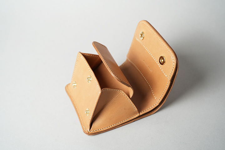 このラインアップの中で一番新しいアイテムのPONTが、定番仕様の発売に合せてヌメクロコバージョンでも登場します。収納例としては、カード10枚、二つ折り紙幣6枚、100円硬貨10枚となります。携帯性に重きを置くため紙幣は二つ折りでの収納になりますが、カードやコインの出し入れは非常にスムーズです。