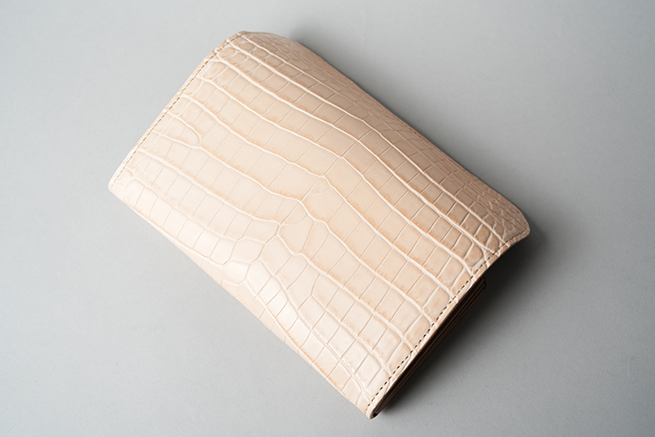 時代の変化により、企画モノとしての登場回数が減少しているWAVE。ただし、ここ日本ではまだまだ長財布の需要があり、WAVEの価値は健在と言えるでしょう。フラップの先端から本体の前身部分まで切れ目のないヌメクロコを用いた外観は、すさまじい迫力があります。