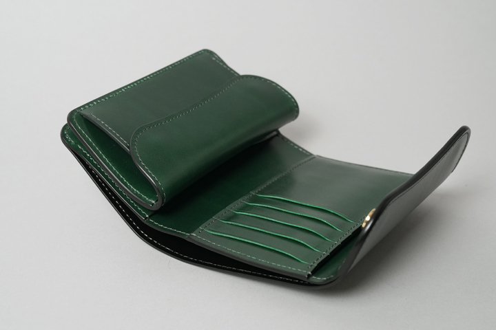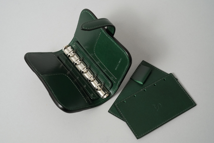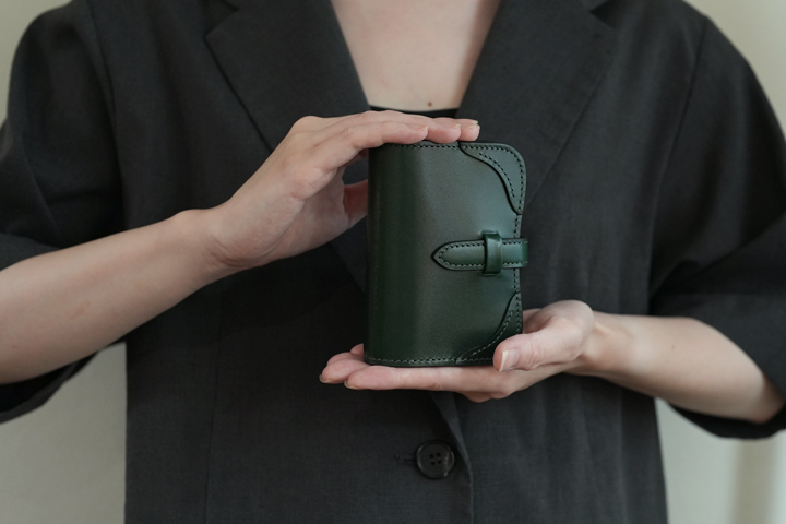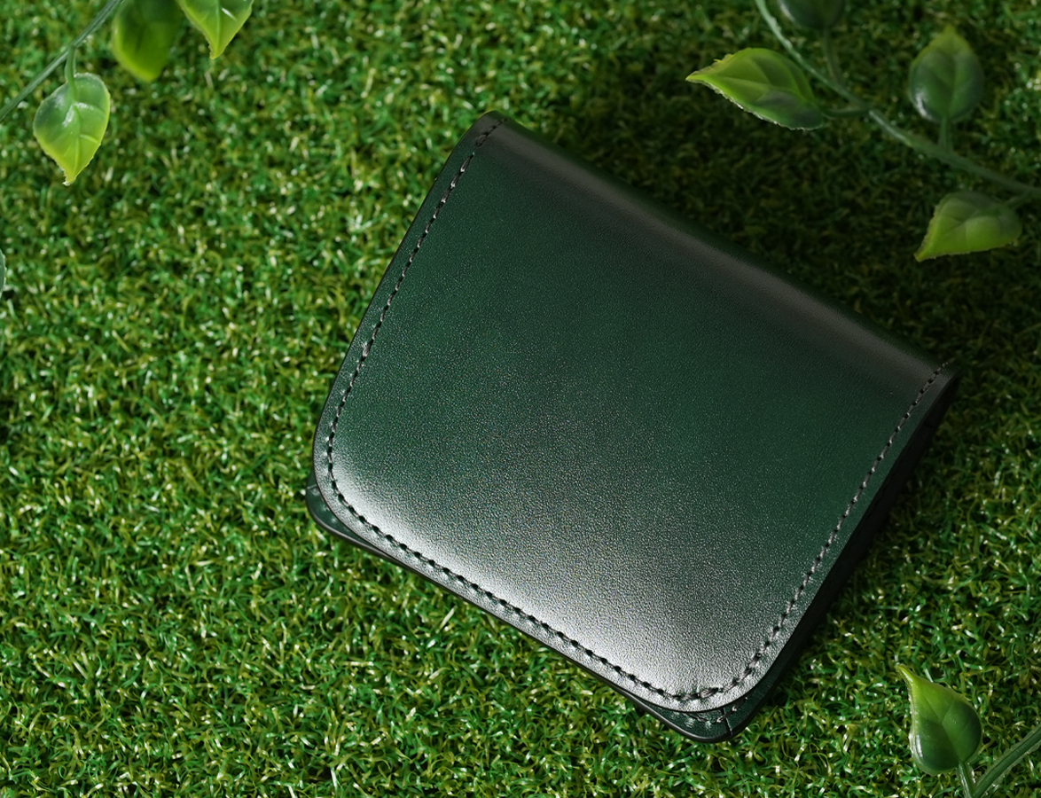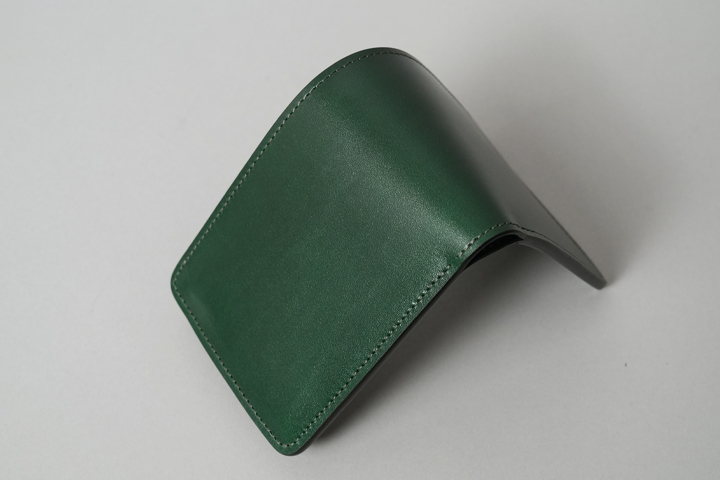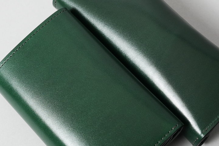 ベルギー・マシュア社の製造するサドルプルアップは、植物タンニンで鞣された堅牢な皮革です。WILDSWANSのブランド創立当初から使用をしており、今まで様々なカラーをご用意して参りましたがその中でもグリーンは特に好評を頂くカラーです。 常盤色(ときわいろ)、織部色(おりべいろ)とも表現できそうなサドルプルアップのグリーンは、美しい暗めの緑色です。安らぎや落ち着きを感じるグリーンカラーのアイテムを身の回りに取り入れ、暑い夏を乗り越えるお守りとしてはいかがでしょうか。