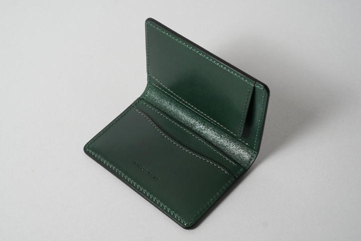 オーソドックスでスマートな名刺入れ。WILDSWANSの中では珍しい直線を残した製品ですが、緻密なステッチやコバの仕上げなど同様のクオリティを維持しています。