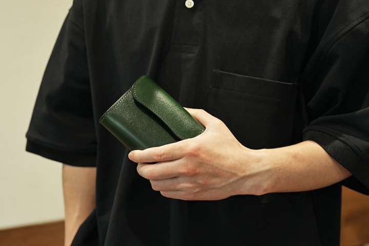 ミニ財布以上、長財布未満の収納力を持つ三つ折り財布。サイズや使用感の他、WILDSWANSの特徴であるコバが多層に重なる様子や、丸く可愛らしい様子が人気の理由でもあります。