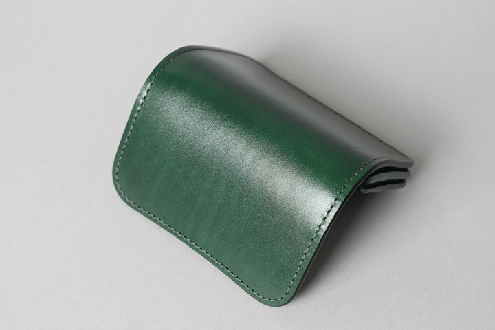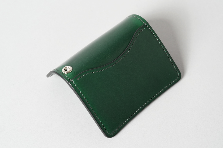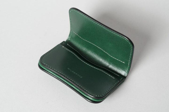 曲線を描くコバが特徴的な名刺入れ。メイン収納部のマチが伸縮することにより、50枚ほどの名刺を収納することができます。プラスチックカードを収納して日常使いしていただくのもおすすめです。