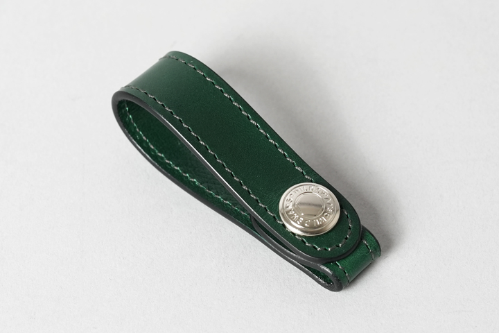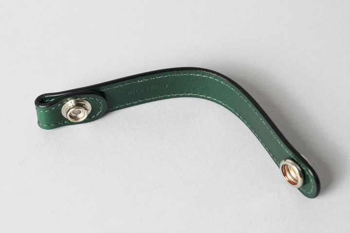 革の帯を頑丈なジャンパーホックで留めたシンプルなキーホルダー。WILDSWANSのカラビナやお好きなキーリングを接続して使用することができます。鞄やベルトループなどに付けていただければ、様々なシーンにさりげなく溶け込みます。