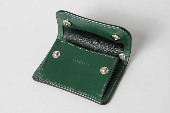 WILDSWANSのスタンダードアイテム・イーノを小さくしたモデル。カード、硬貨、お札を収納する場所がしっかりと分かれているので、小さめのお財布でも収納の定位置を決めたい方にぴったりのアイテムです。