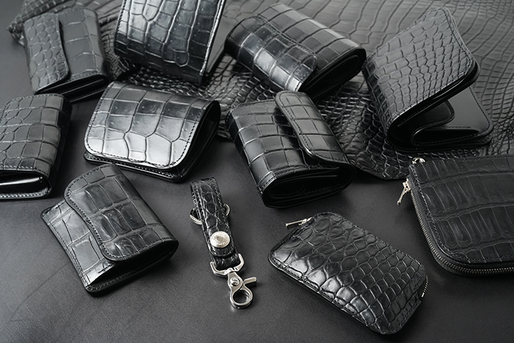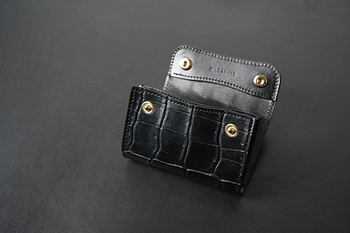 WILDSWANS初製作となるブラックのベイカーオークバークポロサスを使用した特別なシリーズでは、合計11アイテムのラインアップにてご用意しました。非常に貴重な皮革であることから各アイテムの製作数はいずれも数点に留まりますが、すべてのアイテムにおいて、この希少性の高い皮革を十分に堪能頂ける仕上がりとなりました。ご紹介しておりますベイカーオークバークポロサスを用いた至高のアイテムの数々は、8月17日昼12:00よりWILDSWANSの直営店であるWILDSWANS銀座店とWILDSWANS Online Shopにて一斉に発売させて頂きます。各アイテムの詳細や各店の販売方法については、この後ご紹介させて頂きます。