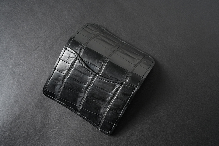 カードケース、名刺入れ、ミニ財布まで用途の汎用性が高いARTHUR。小振りなボディでもベイカーオークバークポロサス特有の鱗(斑)の立体感が全体を引き立てます。また、エグゼクティブなシーンでの名刺入れとしてもおすすめな一品です。