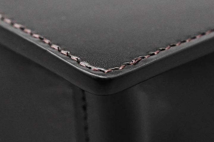 ・油分が多い皮革のため、コバ(製品の縁)に革の重なりが線のように現れるケースがあります。また、ご使用頂くことで線がより顕著に現れる可能性があるため、コバ部分を過度に変形させないようご注意ください。