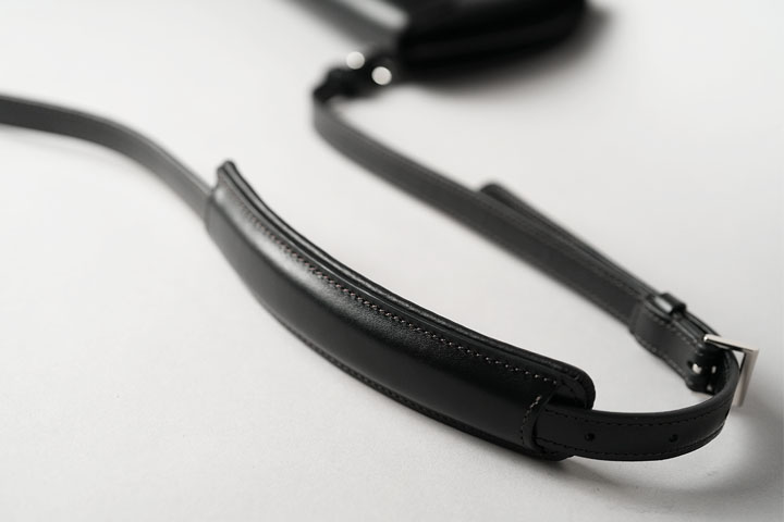 本体と同じサドルプルアップで製作したショルダーストラップは、2.5㎝間隔で7つの調整穴を設けることにより最短102~最長118㎝まで調整が可能です。また、肩に触れる内側には程よいクッションが入った可動式のショルダーパッドが付属されることから、長時間の持ち運びでもストレスが少ない使用を実現します。ちなみにショルダーストラップの外側もサドルプルアップですが、内側にはフランスのアーナル社が製造する牛革のTHEA(テア)を組み合わせることで、肩掛けにした際にショルダーパッドがズレにくくなる工夫も施されています。