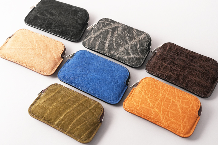 数あるエキゾチックレザーの中でも群を抜いた耐久性を誇るエレファントレザー。しなやかで強靭、かつ鮮やかなカラーリングにより人気の素材です。
