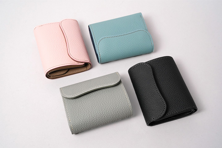 100円硬貨10枚、4つ折り紙幣3枚、カード4枚を収納できる、多機能型ミニ財布です。