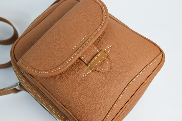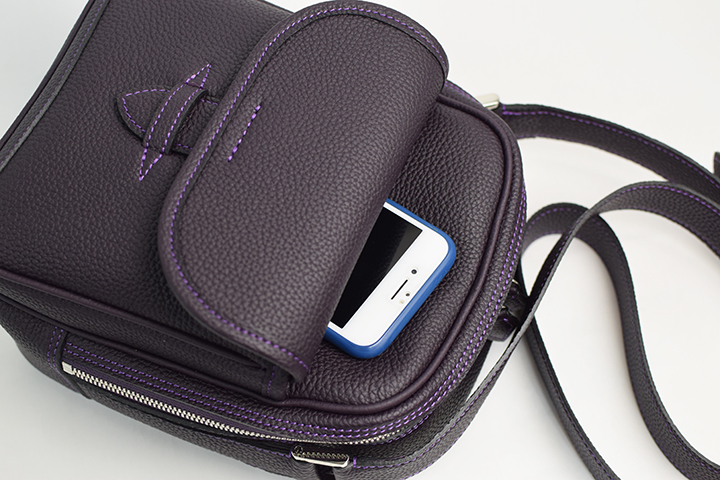 本体前面には、フラップ付きの外付けポケットが装備されており、こちらはキーケースや財布等の収納に適しています。