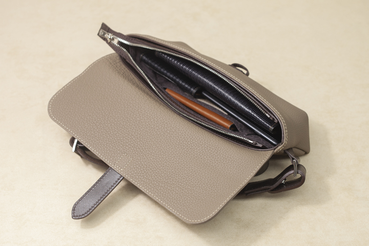 細身ながらちょっとした用事には十分な容量を備えており、且つスリムで本体も嵩張らずに持ち運びが出来るために休日のちょっとした外出にはピッタリのサイズです。