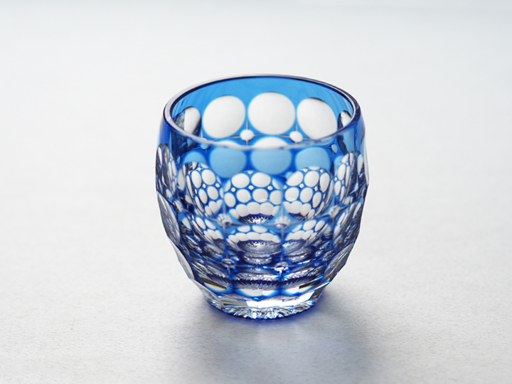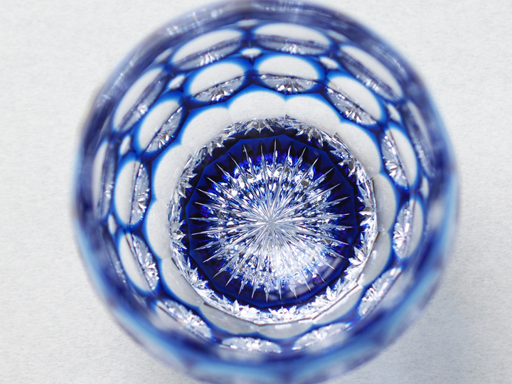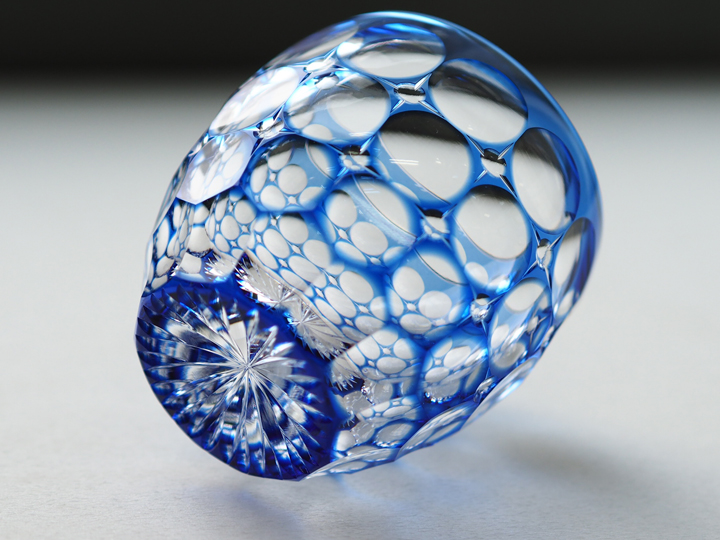 クリスタルガラスならではの高い屈折率と、色被せによる青色のグラデーションとの調和が涼しげな空気を醸し出しています。