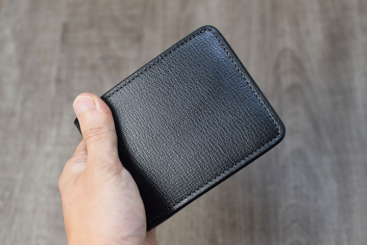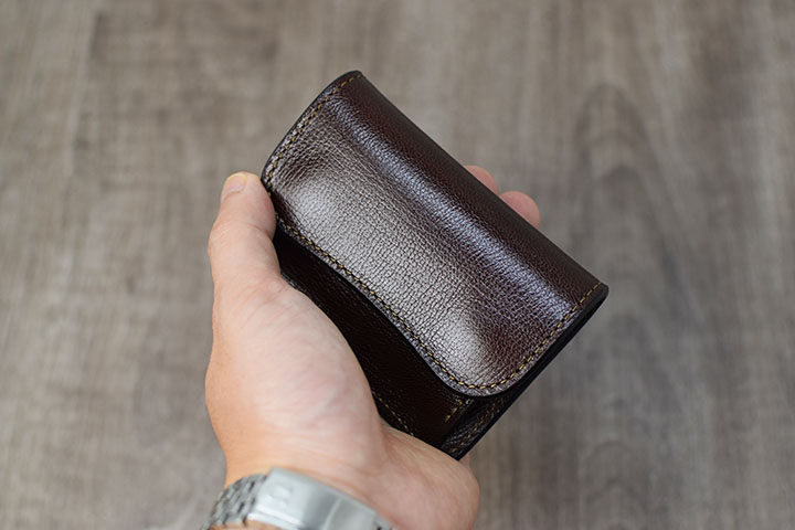 また、コインケースが付属しない分だけ、ある程度収納してもスリムですっきりとした厚みです。