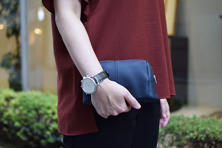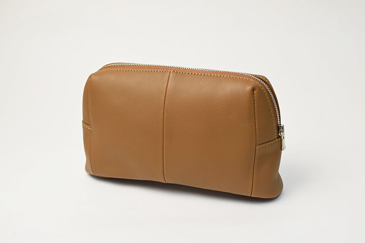 モンパルナスカーフという高級皮革を用いることでこれまでにあるようでなかったシックでラグジュアリーな存在感のポーチに仕上げています。