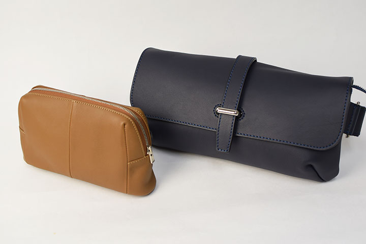 今回はミニショルダーバッグ・SVELTOとポーチ・MP-RUELLEに新色のネイビーとキャメルの2色が加わりました。