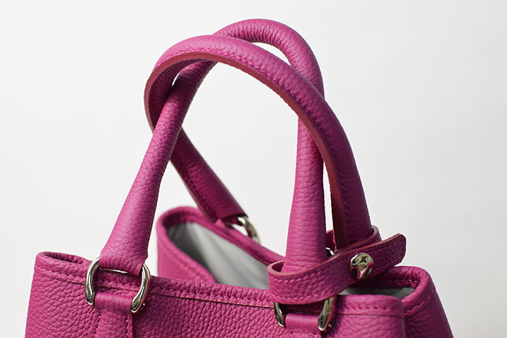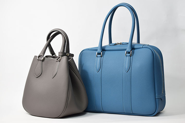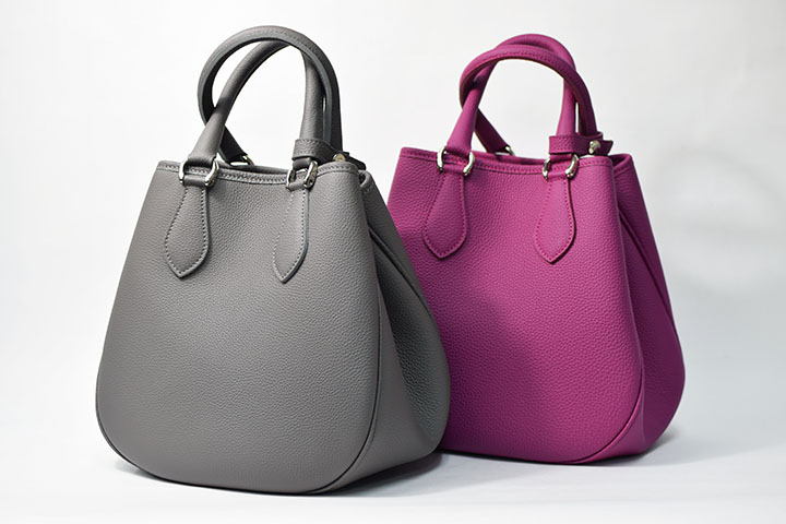 どちらも外装には発色が良く、耐久性に優れたドイツのシュランケンカーフを贅沢に使用しており、その特性を十分に生かしたふっくらした質感により女性らしい優雅なディテールのバッグに仕上げています。