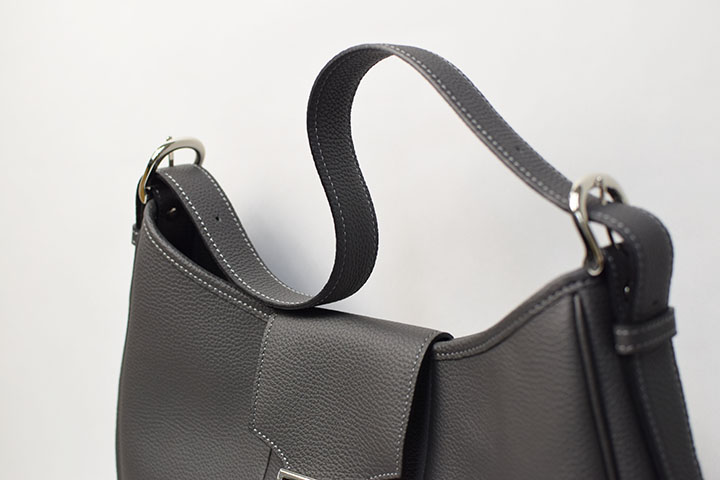 軽やかでありながら適度な幅を持ったこちらのハンドルは肩掛けにした際も疲れにくく見た目にも美しい、ミセスの重要なパーツとなっています。