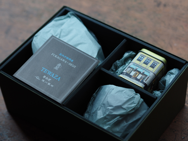 直営実店舗では有田焼の窯元・深川製磁さんのTEWAZA PICCOLOとTEWAZA POT の器とミニ缶を合わせたギフト用の3点ティーセット(15,816円 税込)もご用意しております。深川製磁さんの透明感のある磁器の白さが、紅茶の色をより美しく鮮やかに引き立たせます。ご自宅用の他、特別な方へのギフトとして最適のセットです。
