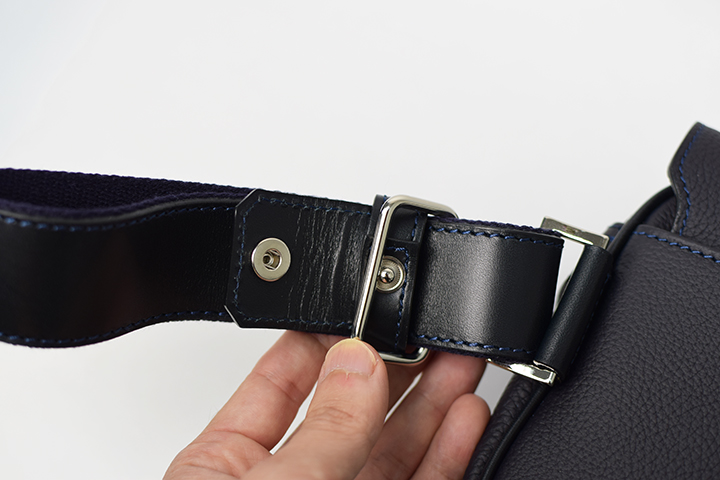 また、ウエストポーチとして使用する際にはショルダーストラップに付属しているパーツを解除して、ストラップの長さを調整することで簡単に仕様を変更できます。