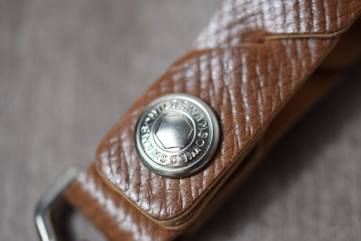 ちなみにkf-003のホックは、他のWILDSWANS製品で使われているホックと異なり、ホック表面の盛り上がりが緩やかで使用しても革の表面にアタリが出にくいホックを採用しています。