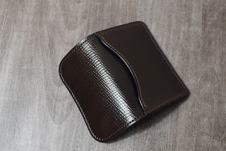 ホーウィンシェルコードバンRUSSIA/HATCHは背面のカードポケットを含む外装とコインケースの前胴に使用しました。