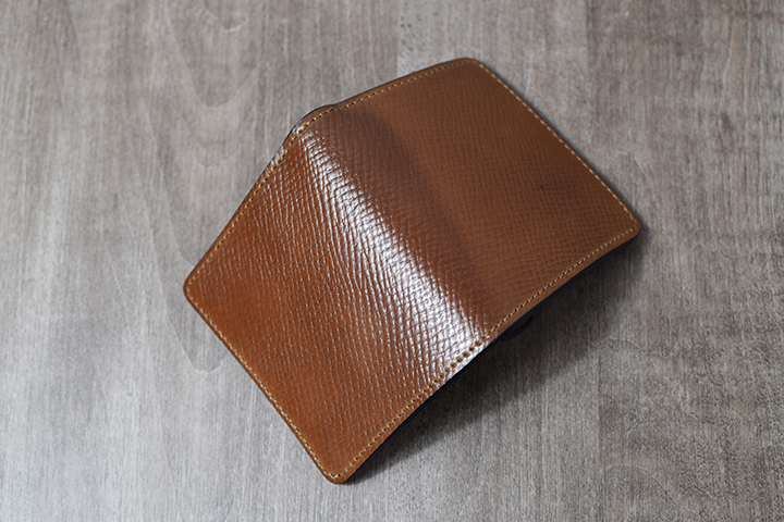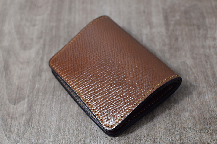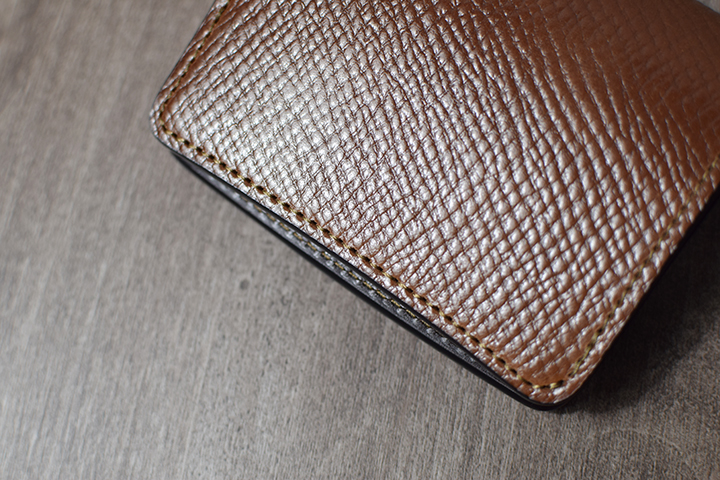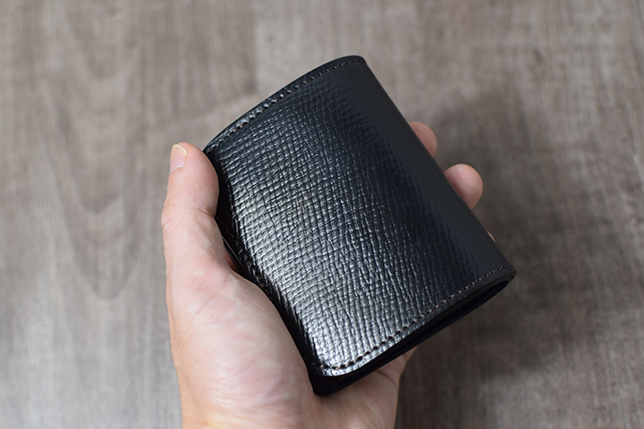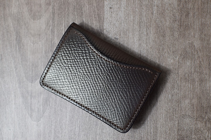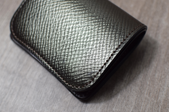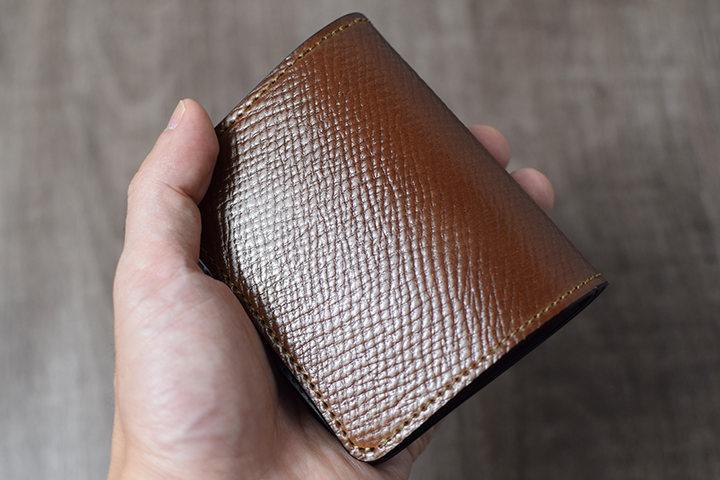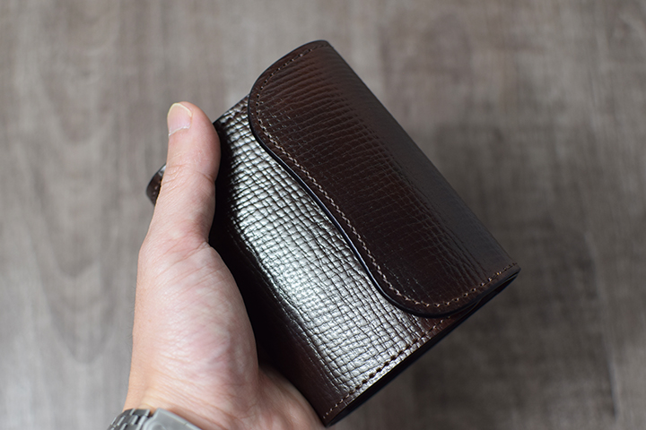 PALMと同じカテゴリーのミニ財布のkf-003はPALMのように背面のポケットがないため、ホーウィンシェルコードバンRUSSIA/HATCHを用いた外観は非常にすっきりとした印象を受けます。