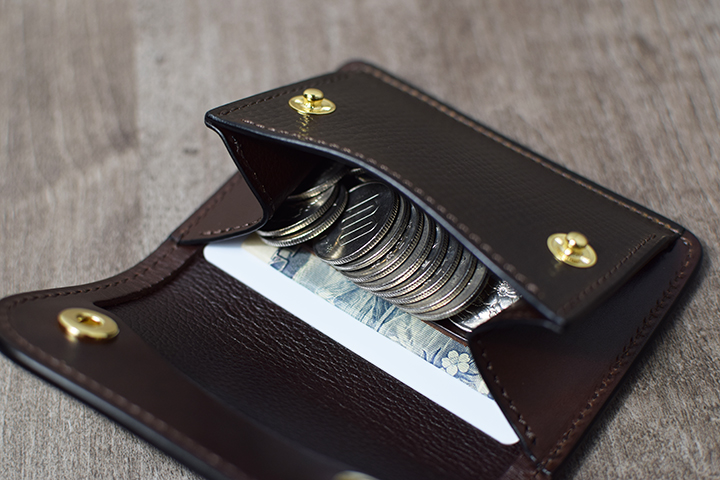 コインケースの枠にとどまらず、カードや折りたたんだ紙幣まで収納できる使い勝手の良いアイテムです。