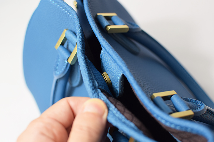 メイン収納の上部にはマグネット式の留め具があるので素早い出し入れを実現すると同時に中身が見えないような配慮が施されています。