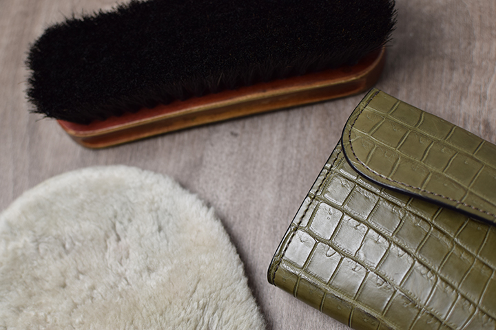 クリームを使用する場合は爬虫類専用のニュートラル系クリームがおすすめですが、塗り重ねるように頻繁に塗布すると皮革表面に曇りが出ることがあるため、まずはブラッシングと乾拭きのお手入れをお勧めします。