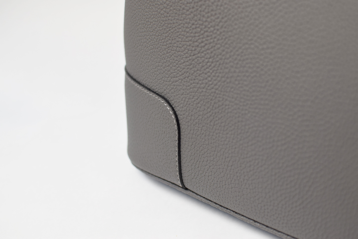 一見するとシンプルなディテールのレザーのトートバッグですが発色の良いシュランケンカーフを外装に用いることで艶やかでふっくらとした女性らしいデザインに仕上げています。