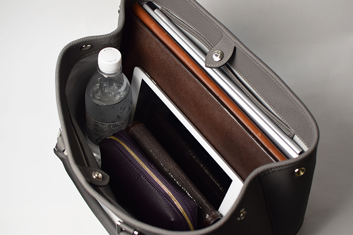 優れた収納力を持つタンクトートはポーチ、手帳、ペットボトル、A4ファイル、ノートPC、タブレット端末まで普段使いから仕事にマストなアイテムまでまとめて収納が可能です。