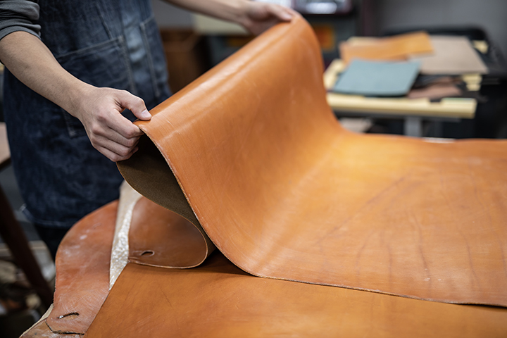 WILDSWANSのアトリエ見学では普段なかなか見ることができない製作前の様々な種類の大きな革や、WILDSWANS製品の製作過程、職人たちの熟練の技まで余すところなくご覧頂けます。