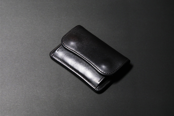 こちらは、スタッフが約1年間使用したコインケースTONGUEブラックのエイジングサンプルでございます。