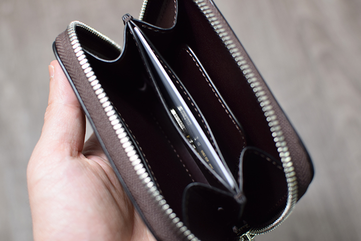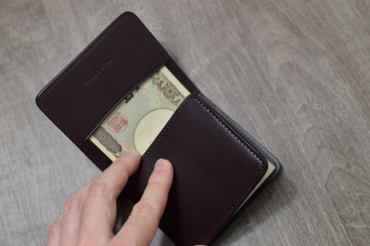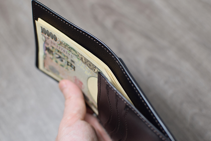 内装を開いた際に紙幣が見えてしまうことに抵抗がある方は、紙幣を二つ折りにして収納することも可能です。