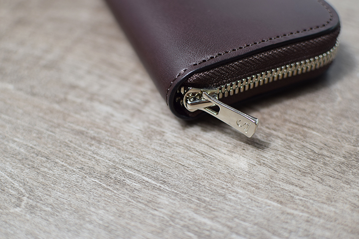 コインケースはファスナーで開閉します。舟形に開くため非常に中身が見やすい仕様です。