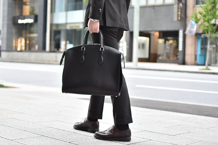 硬質でハリのある皮革によって形作られる優雅なフォルムとクラシカルな雰囲気が印象的で、ビジネスシーンに溶け込みつつも、しっかりと存在感を残すアイテムとして人気のモデルです。
