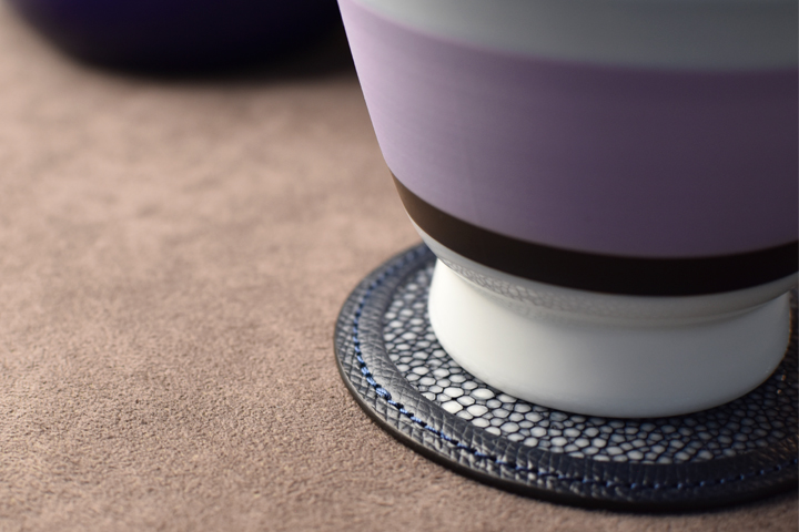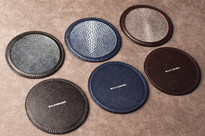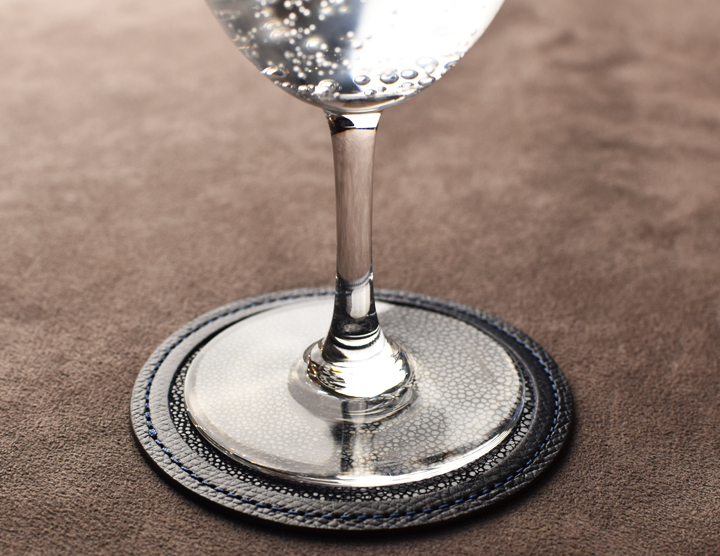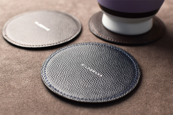コースターには様々な素材が使用されておりますが、皮革を素材としたものは珍しく、また非常に贅沢なアイテムでもあります。