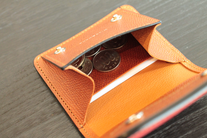 内部は先ほどご紹介いたしましたTONGUEとほぼ同様の構造で、内部の仕切りでカードと小銭を別けて入れることができます。