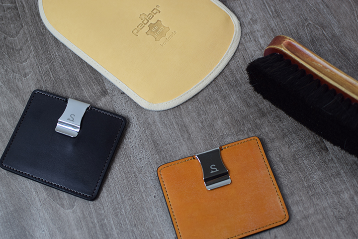最後にMINIMALで使用しているフルグレインブライドルレザーとイングリッシュブライドルレザー、2つの皮革のお手入れ方法についてご説明させて頂きます。どちらも皮革内部にロウ分と油分が十分に含まれていることから、基本的に皮革用のクリームを使用する機会はほとんどありません。月に一度程度の割合で、ブラッシングと柔らかい布やレザーグローブ等を用いての乾拭きで完結します。また、どちらも耐久性の高い皮革ではありますが、水分や汗を嫌うことから、これらが付着した際はなるべく早い段階で取り除くことをお勧めします。なお、防水スプレーについては飛沫がシミなどになり皮革の風合いが損なわれる可能性もあるため、極力使用しないようお願い致します。