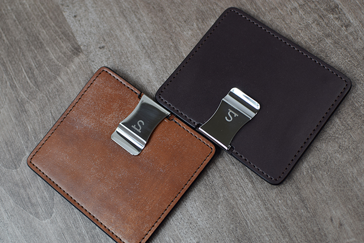 続いてMINIMALの仕様についてご説明させて頂きます。ステンレス製のオリジナルクリップが付属された面が本体の表となります。このためこの面のステッチが上糸となります。