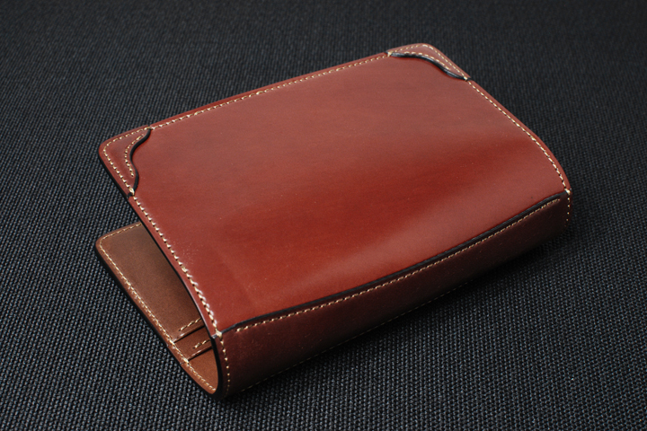 本シリーズの外装にはアメリカ・ホーウィン社製のシェルコードバンを用いています。 牛革の3倍とも言われる繊維密度の高さによってしなやか且つ肌理の細かい革質をしており、使い込むことで徐々に表れる独特な鈍い光沢は金属を思わせるような力強い印象があります。