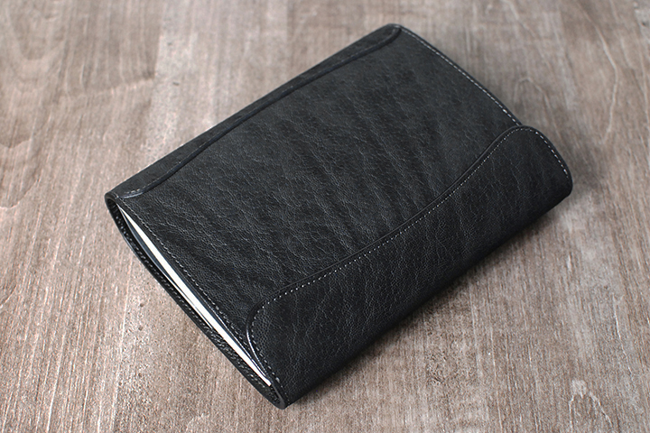 エレファントレザーの凄みを十分に堪能できる大迫力のノートカバーです。同サイズのリフィルを収納して手用カバーとしてもご使用頂けます。こちらもブラックのみのご用意となります。