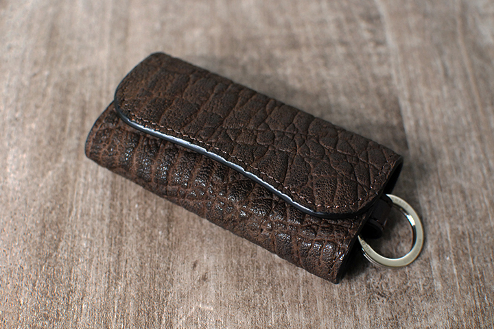 こちらはエレファントレザーの鼻の部位を用いたCLIPPERⅡです。ベルベットのような贅沢な手触りのキーケースに仕上げています。こちらはチョコのみのご用意となります。