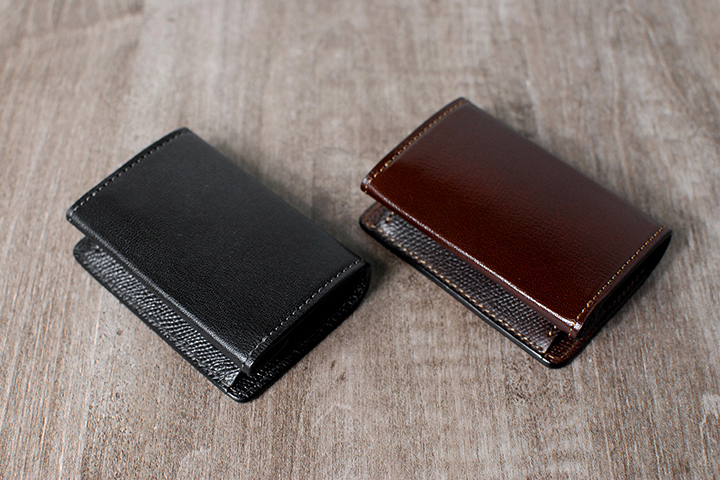 イタリア・ボナウド社が製造するゴート(山羊革)、“MOVIE PALMELLATO”を外装に用いた超小型コインウォレット・CLAMです。こちらはブラックとチョコ、2色のご用意となります。