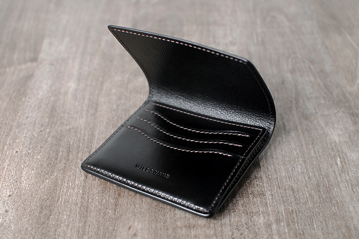 ゴートシリーズの最後は、WILDSWANSのラインナップの中でも最初期から存在するWINGSですが、ゴートを外装に使用することで、ドレススタイルによりマッチした定番の二つ折り財布になりました。カラーはブラックのみのご用意となります。